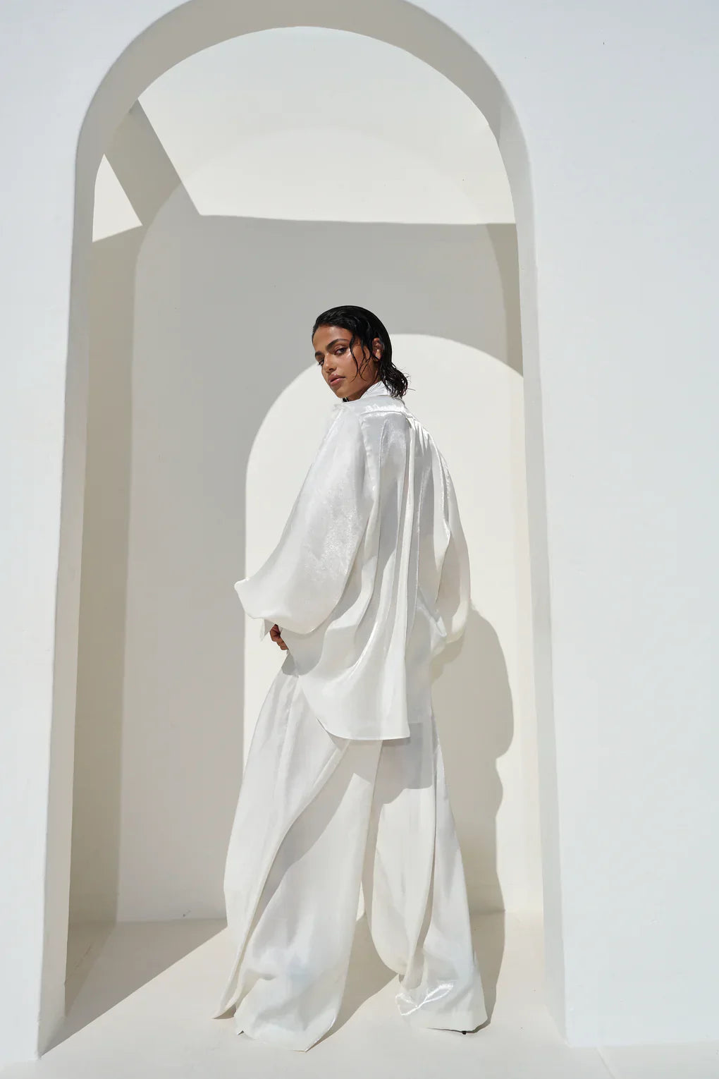 Key Features: √ Deep V-Neck Shirt -A bold, stylish neckline for aflattering fit √ High-Waisted Wide-Leg Pants-Creates a long,elegant silhouette √ Soft & Breathable Fabric-Lightweight andcomfortable for all-day wear √Versatile & Chic-Perfect for parties, vacations, orstreet-style glam