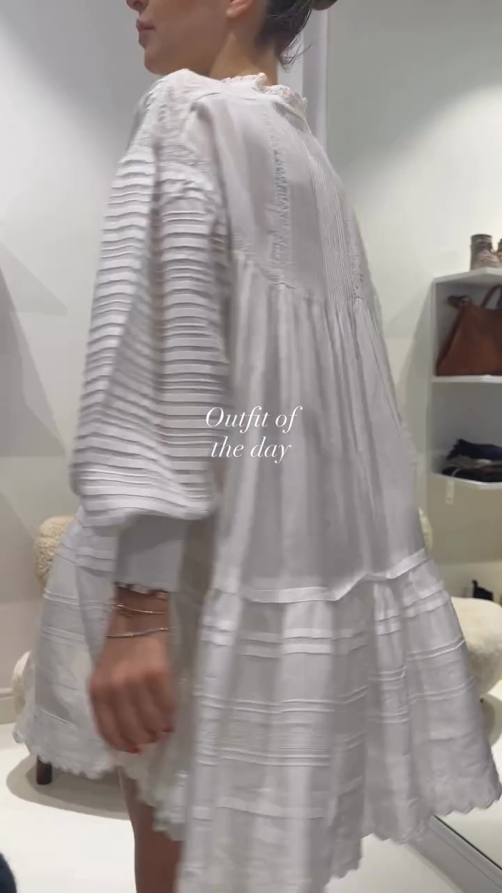 This white bohemian-style embroidered mini dress is made from a lightweight and breathable delicate fabric, adding a touch of romantic and casual charm.