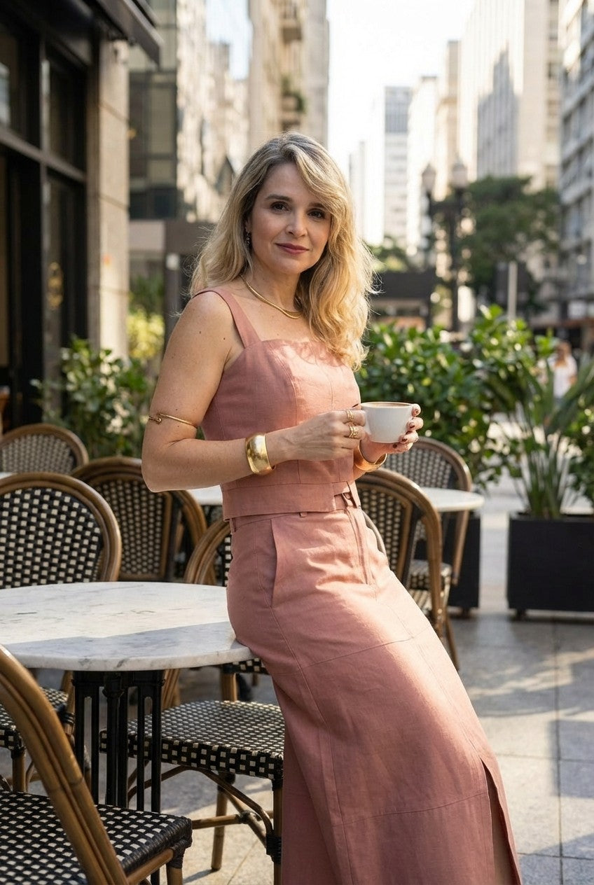 Sophisticated style meets summer ease. This stunning two-piece set is designed for the woman who appreciates timeless elegance and modern silhouettes in a beautiful dusty rose hue.